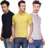 Men’s Polo Neck Short Sleeve Casual Tshirt Combo of Dark Blue, Grey, Yellow colors (Pack of 3)