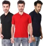 Men’s Polo Neck Short Sleeve Casual Tshirt Combo of Dark Blue, Red, Black colors (Pack of 3)