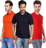Men’s Polo Neck Short Sleeve Casual Tshirt Combo of Dark Blue, Red, Orange colors (Pack of 3)